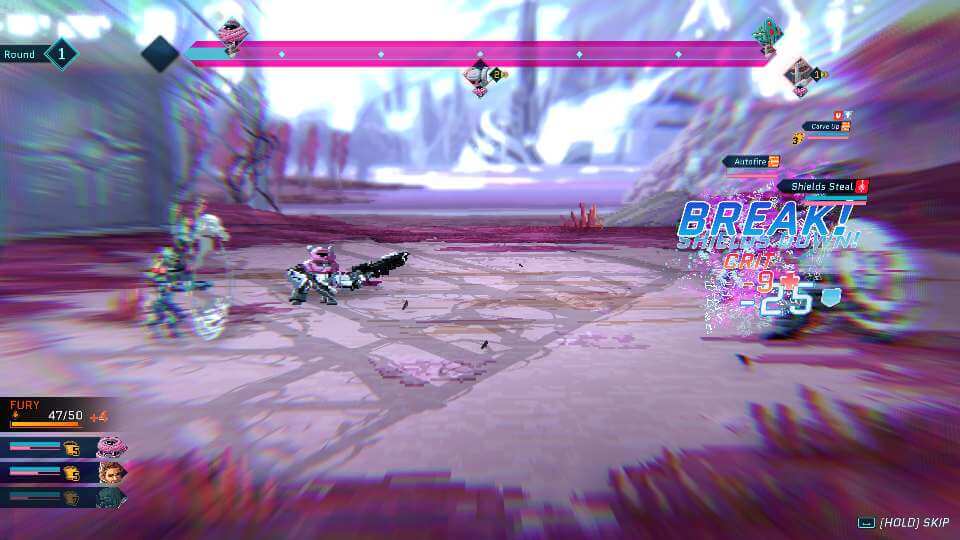 I liked the challenge that every battle is like a game of chess. The player’s goal, besides defeating the enemy, is to push them past the bar and ‘break’ them, which means they lose their turn. It’s challenging in a good way because not all the playable characters have the same attributes.