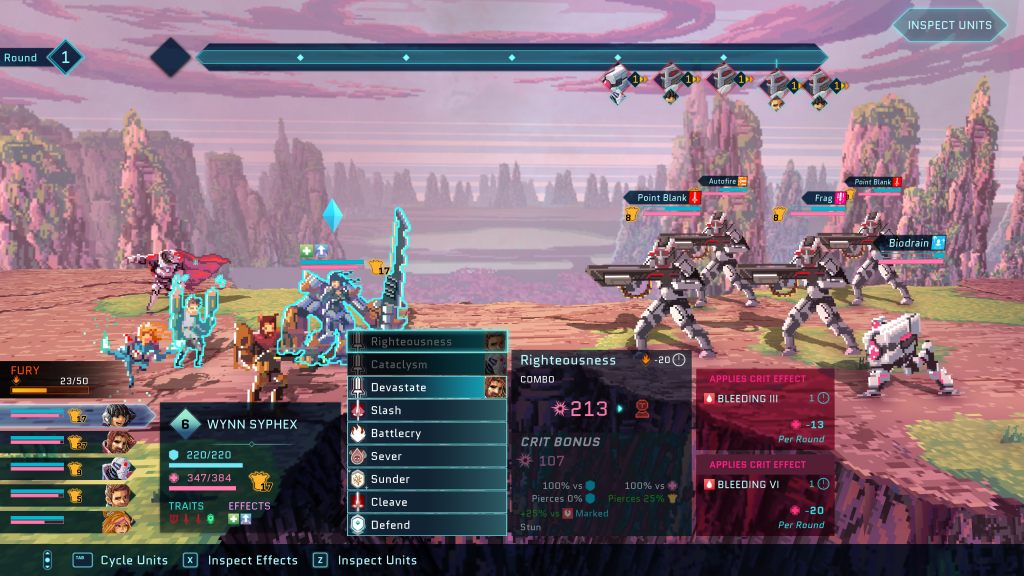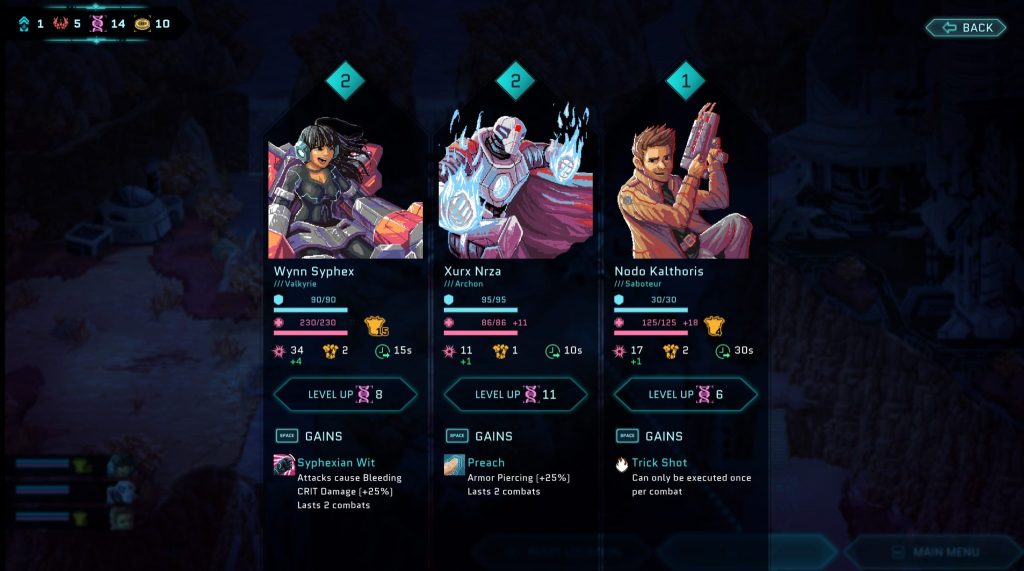 Star Renegades is a pixel, RPG light, turn-based combat game. The Imperium is an enemy that crosses realities to take control of the worlds in each reality. The player is part of the Renegades, those trying to stop the Imperium and save all the realities from their conquest.