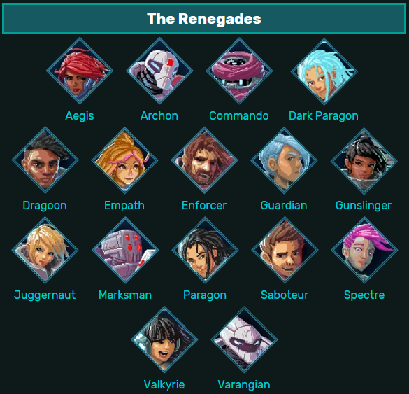 When the player defeats the Imperium in the first reality, a member of the renegades becomes the next villain because they might be evil in another reality and cannot exist in the one you are trying to free (meaning they are unplayable until the player defeats their evil version). This forces the player to try different characters, fail, and find a good team that will make them succeed. There are no duplications in stats for characters, meaning not all characters are good at piercing armour or shields, and not all characters can regenerate shields, increasing the challenge.